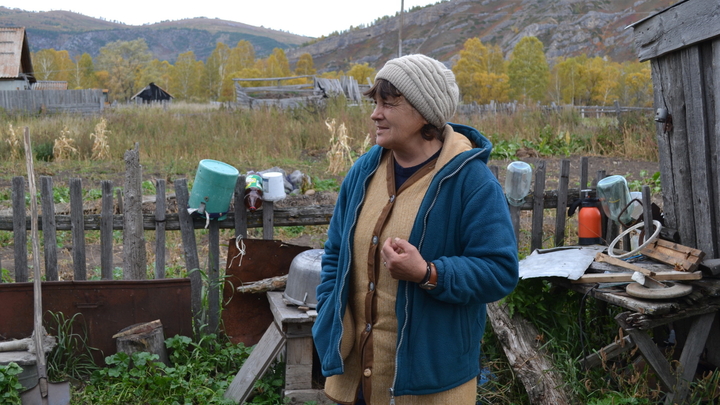 "Домов тут раньше было куча. Было время, когда комсомольцы-бабы приехали с ребятишками, все одиночки. А теперь мало нас осталось, выживаем", — рассказывает хозяйка.