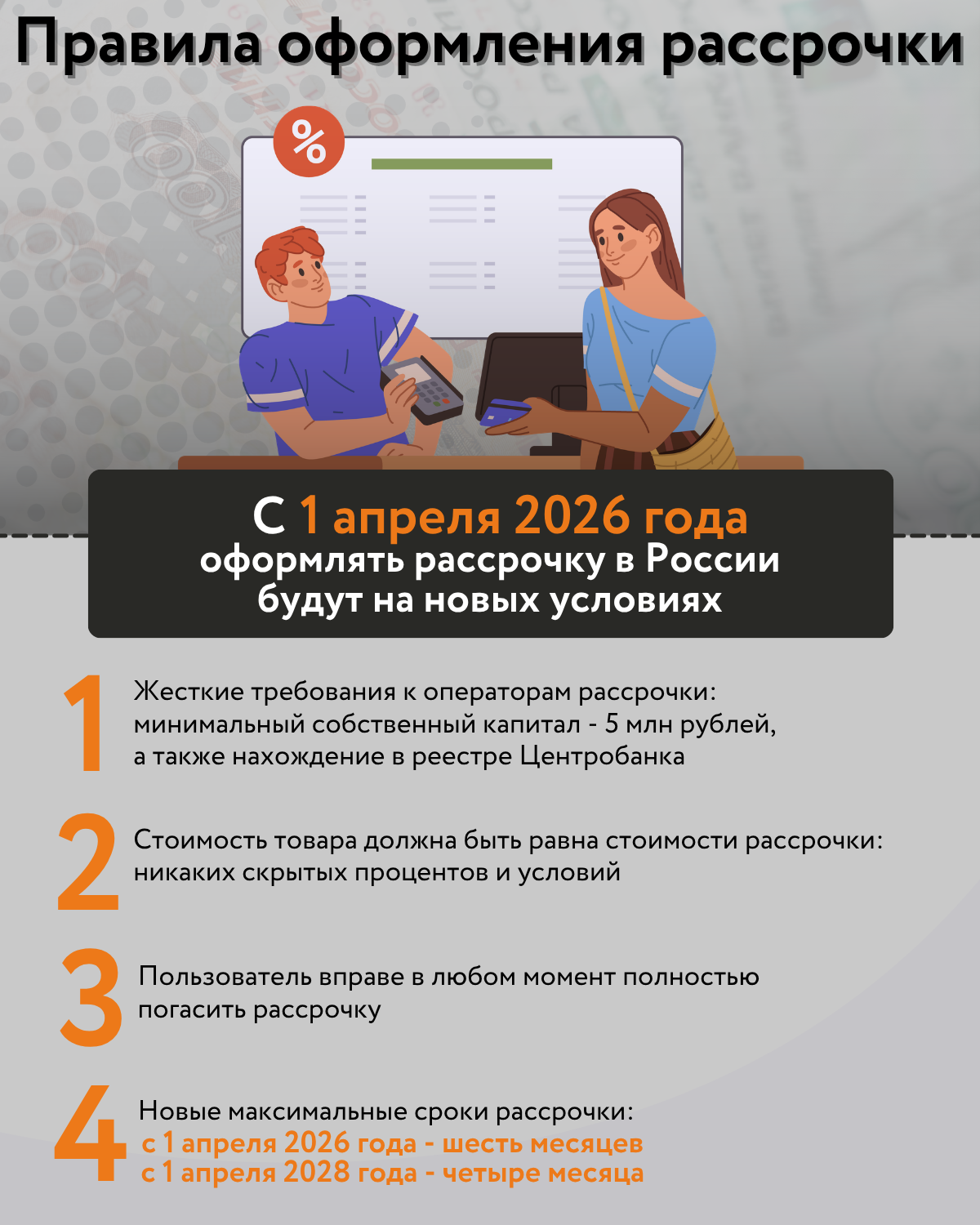 Кстати, в будущем вся система предоставления рассрочек будет меняться. Если с 1 апреля максимальный срок рассрочки будет составлять шесть месяцев, то ровно через два года (с 1 апреля 2028-го) его снизят до четырех месяцев.