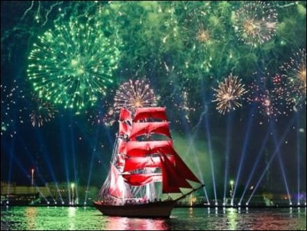 Этой ночью выпускники петербургских школ станцевали рекордный танец под поппури из эстрадных хитов. По оценкам организаторов, в импровизированном танце должны были участвовать около 60 тысяч выпускников, однако из-за дождя участников рекорда было меньше. Праздничный концерт на Дворцовой площади провели телеведущий Иван Ургант и певица Юлия Ковальчук. Гостей праздника развлекали известные российские и зарубежные артисты. А кульминацией стало масштабное пиротехническое шоу над акваторией Невы и появление брига под алыми парусами.
