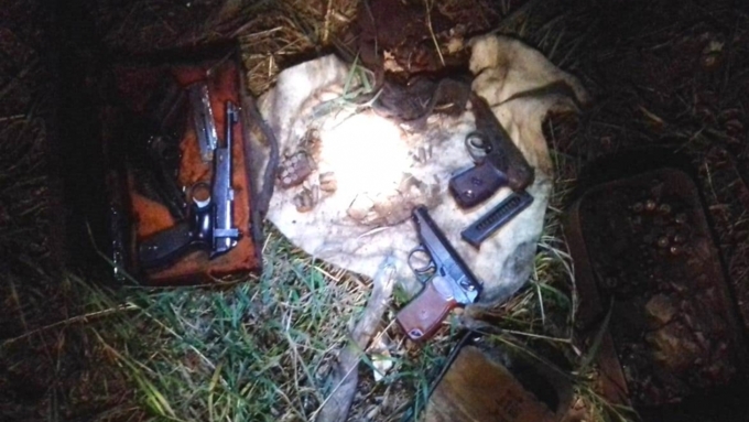"В указанном грибником месте саперы обнаружили 4 пистолета: 2 пистолета Макарова, газовый пистолет 6П42 и самозарядный малокалиберный пистолет МЦМ. Также в тайнике находилось почти 700 патронов калибра 7,62 мм, 100 патронов калибра 9 мм и 2 патрона иностранного производства калибра 5,5 мм", - уточняют в ведомстве.