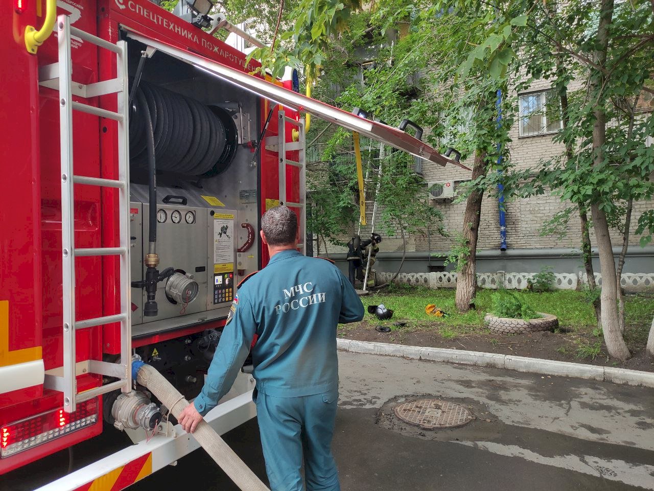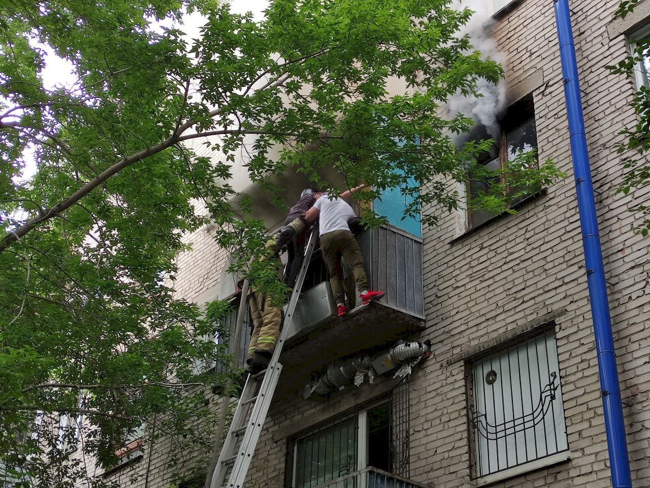 Из горящей квартиры спасатели по лестнице вывели пожилого мужчину