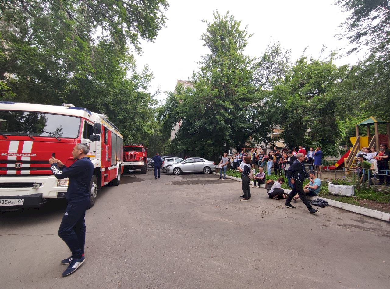 Людей эвакуировали из многоэтажки в центре Барнаула из-за пожара