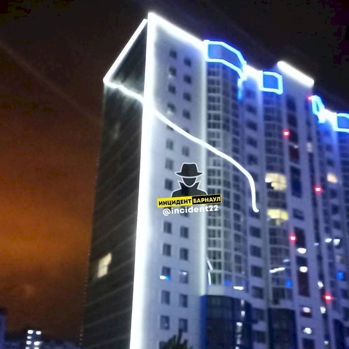 Сильный ветер также вырвал ленту подсветки жилого дома в ЖК «Адмирал» в Северном Власихинском проезде.