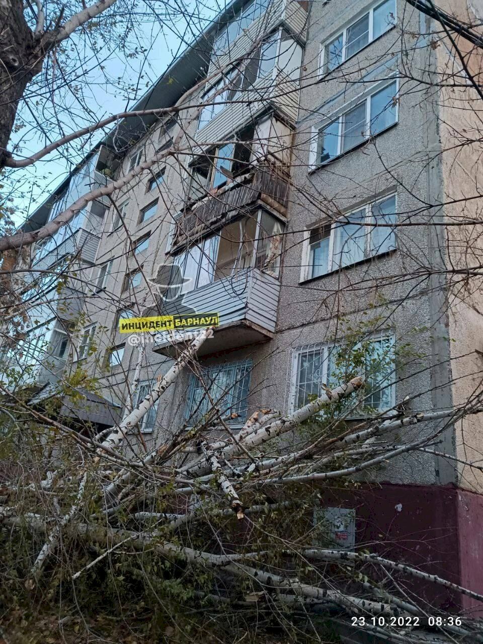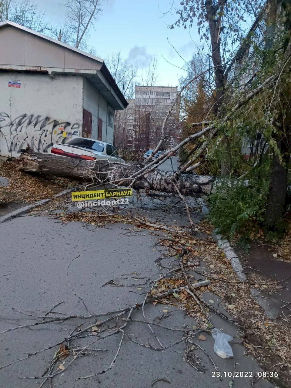 Помимо этого, на Павловском тракте во дворе дома № 60в ураганный ветер снёс остов торговой палатки и чуть не повалил её на припаркованные рядом автомобили.