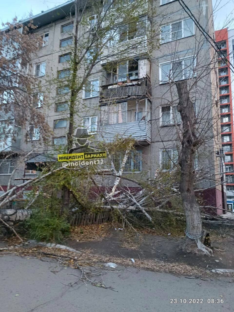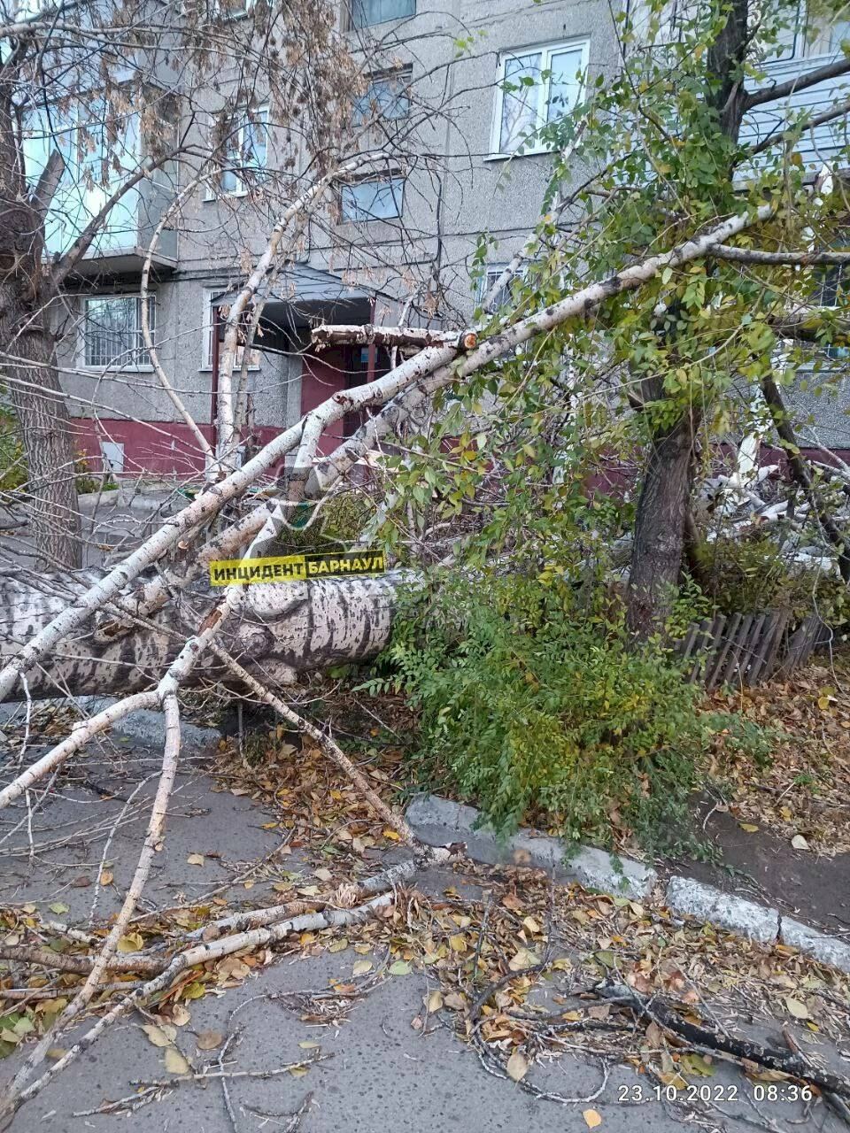 Вырванные остановки и упавшее на дом дерево. Последствия разбушевавшегося ночного ветра в Барнауле