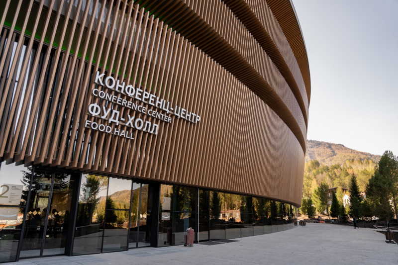 На всесезонном курорте "Манжерок". Примечательно, что именно Союз риелторов стал первым, кто провёл деловое мероприятие в новом пятизвёздочном отеле. Он пока не принимает гостей, но первые, кто его увидел, высоко оценили самый большой туристический объект региона.