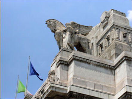 Вот, например, центральный вокзал Милана. Специалистам пришлось немало потрудиться, чтобы сделать для него современную "начинку", сохранив исторический стиль. Впрочем, один из сохраненных фрагментов многим наверняка покажется неприемлемым. Так, например, было решено в историческом зале оставить на полу мозаику в виде свастики – наследие фашистов. Объяснение было такое: это – история и память. Даже если она "черная".