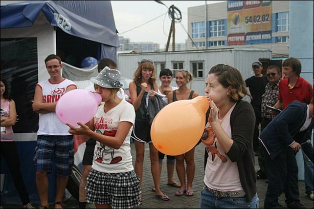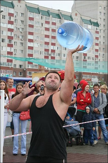 В первом состязании, которое называлось "Веселый бутыль", спортсменам нужно было