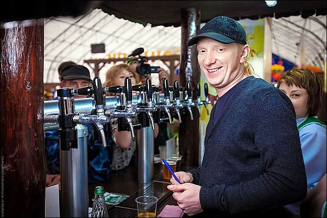 И все-таки главным событием фестиваля стал концерт группы "Братья Грим". Разумеется, солист группы Константин Бурдаев от недостатка внимания не страдал. Настройка звука на главной сцене уже собрала немалое количество народу. А уж когда Константин собственной персоной появился на розливе пива в одном из павильонов… Стоит ли говорить, что вокруг сразу образовалась толпа поклонников?