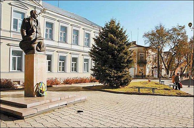 И памятник Виталию Примакову, выдающемуся советскому командиру, что сражался во главе корпуса Красного Казачества против махновцев и армии УНР, отрядов Деникина, Врангеля, польских войск во время польско-советской войны 1920-го, – этот памятник, стоявший перед школой, снесли.