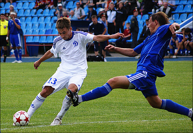 В перерыве Сергей Иромашвили убрал с поля грешившего неточностями Максима Ерусланова, вместо которого на поле вышел Дмитрий Лабеко.  И начали вторую половину динамовцы достаточно активно – сначала Александр Деркач хлёстким ударом с дальней дистанции чуть-чуть не попал в дальний угол ворот гостей, а несколькими минутами позже Андрей Силютин головой расстреливал вратаря гостей в упор, однако Сергей Бородин намертво забрал мяч. Гости отсиживаться в обороне не собирались и при возможности активно контратаковали – особо выделялся вышеупомянутый Евгений Рагоза, который в одной из атак в высоком прыжке переправлял мяч в дальний угол ворот Юрия Дюпина, однако, на наше счастье, мяч прошёл рядом со штангой.