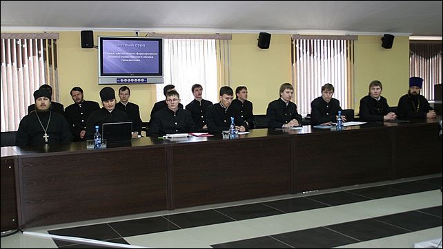 Курсанты института и студенты семинарии в своих докладах поднимали вопросы: христианского воспитания молодежи вступающей в брак, социальные и нравственные проблемы современной семьи, влияние средств массовой информации на нравственные устои общества и многое другое. Так как подобные мероприятия уже стали доброй традицией для нашего вуза и представителей церкви, в конференц-зале царила оживленная и дружеская атмосфера. Каждый вопрос ребята подробно обсуждали, высказывали свое мнение, цитировали древних философов и научных деятелей.