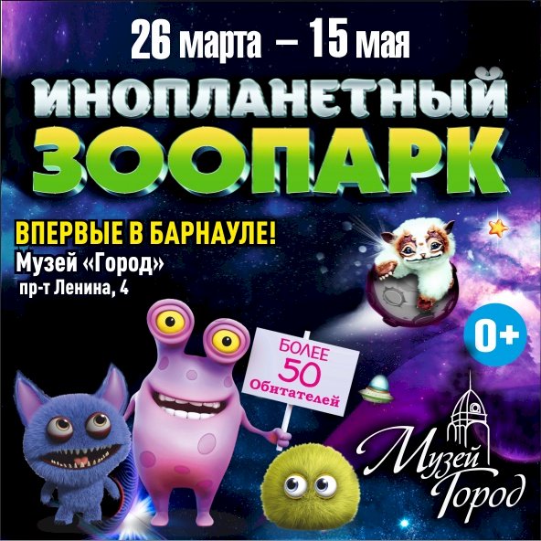 Это необычная выставка существ со всех планет, даже с тех, которые ещё не открыли. Представлено более 50 удивительных экспонатов: трёхглазые, шестилапые, двухвостые звери со всех уголков галактики. Они настолько очаровательны, что ими невозможно не умиляться. «Обитают» они в полной темноте, так что на входе каждый посетитель получит фонарик.