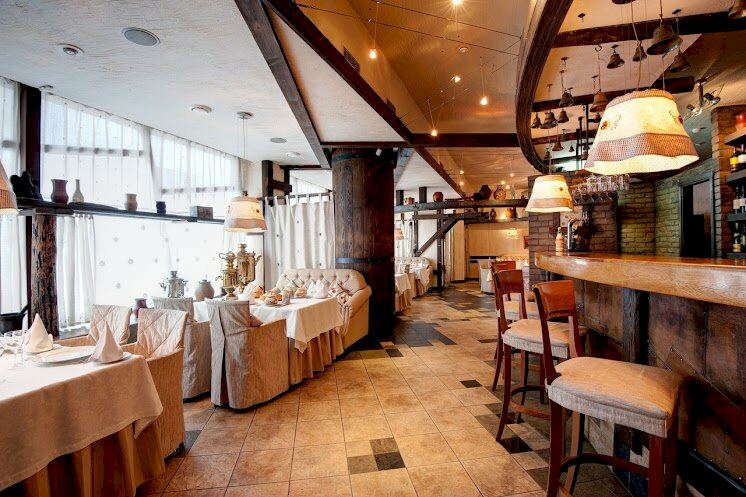 Самый большой зал оформлен в светлых тонах, зал на 50 человек — в более характерном русском стиле. Но в каждом из них гости смогут с удобством разместиться за столами, при этом останется достаточно места для веселья и танцев.