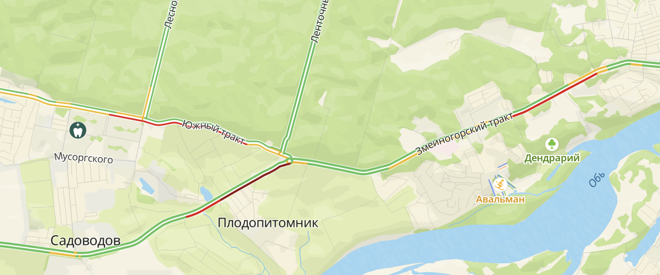 Уже привычные для водителей пробки – в районе строительства будущей развязки на пересечении этих трактов. На Змеиногорском пробка также собралась от института Лисавенко до базы "Динамо".