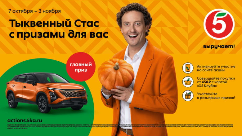 "Тыквенный Стас". "Пятерочка" запустила акцию, где можно выиграть оранжевый автомобиль