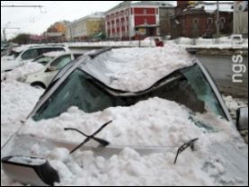 В Барнауле от схода снега с крыш пострадали несколько автомобилей