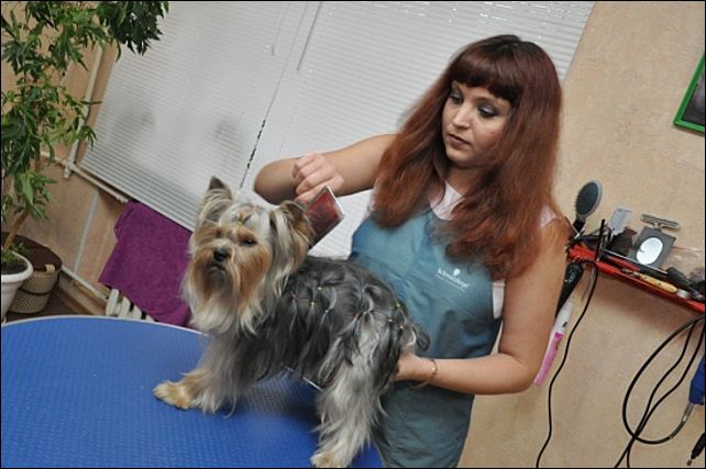 - Мы используем только специальные средства по уходу за собачьей шерстью, причем для каждой породы существует свое, - рассказывает Ирина. – К примеру, у йоркширских терьеров структура волоса близка к человеческому, и им обязательно нужен бальзам. Если он начинает ломаться, то мы вместе с хозяевами выясняем причину: чем кормят собаку, как купают, что на нее надевают.