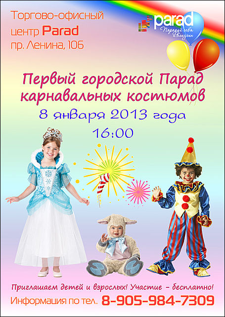 Парад будет проходить в 2 этапа(дефиле карнавальных костюмов + праздничное шествие), а также будут выбраны лучшие костюмы в каждой возрастной категории: