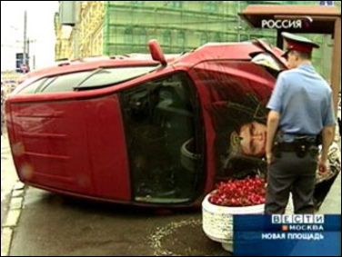 От удара Rav4 развернуло, джип завалился на бок и по диагонали отлетел на будку находившегося поблизости поста ДПС. За несколько секунд до этого автоинспектор Игорь Загребнюк остановил водителя и пошел проверять документы. Машина влетела в его рабочее место на его глазах.