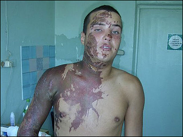 Предварительно установлено, что 27 августа т.г. военнослужащих по призыву войсковой части 07059 привлекли к погрузке емкостей с электролитом в автомобиль "КАМАЗ". При переносе одной из емкостей из-за ее ненадлежащей закупорки произошло разливание жидкости на рядового Акишина, которого в тот же день доставили в Надеждинскую районную больницу Приморского края. 5 октября т.г. военнослужащего перевели в филиал "301 окружного военного клинического госпиталя" Минобороны России, расположенный в г. Уссурийске. По оценкам врачей, рядовой получил химический ожог 17 % поверхности тела, у него пострадали лицо, шея, грудная клетка, а также правая рука.