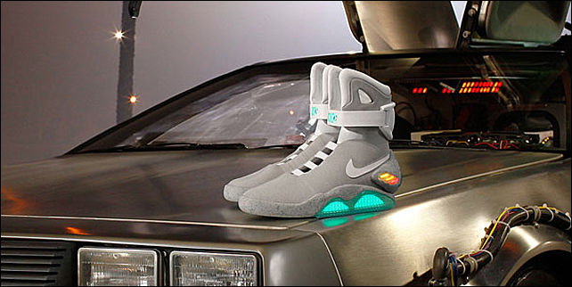 Фирма Nike, "обувавшая" главного героя сериала "Назад в будущее", выпустила точную копию кроссовок из второй части эпопеи, "из будущего". Единственное отличие этой обуви от "киношной" в том, что она не умеет шнуровать сама себя, - пишет