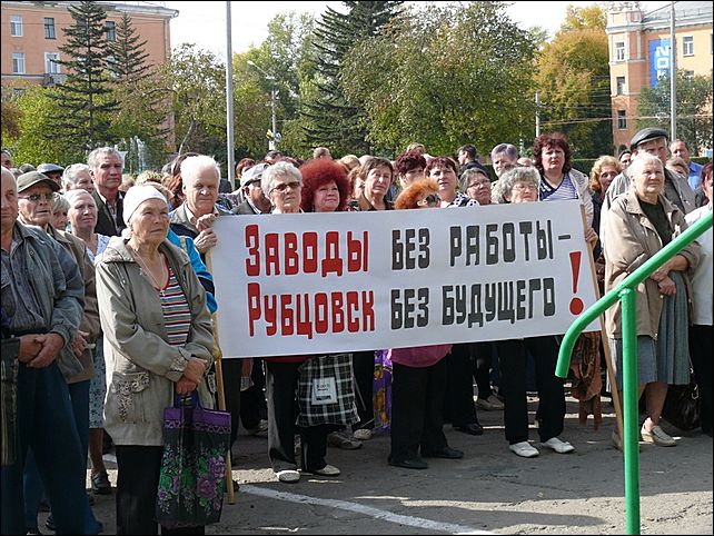 Мы, жители города Рубцовска Алтайского края, собравшись 22 сентября 2009года на общегородской митинг, выражаем несогласие с проводимым курсом Правительства В.В.Путина, Губернатора края А. Б. Карлина и политикой краевой Администрации в отношении судьбы города Рубцовска.