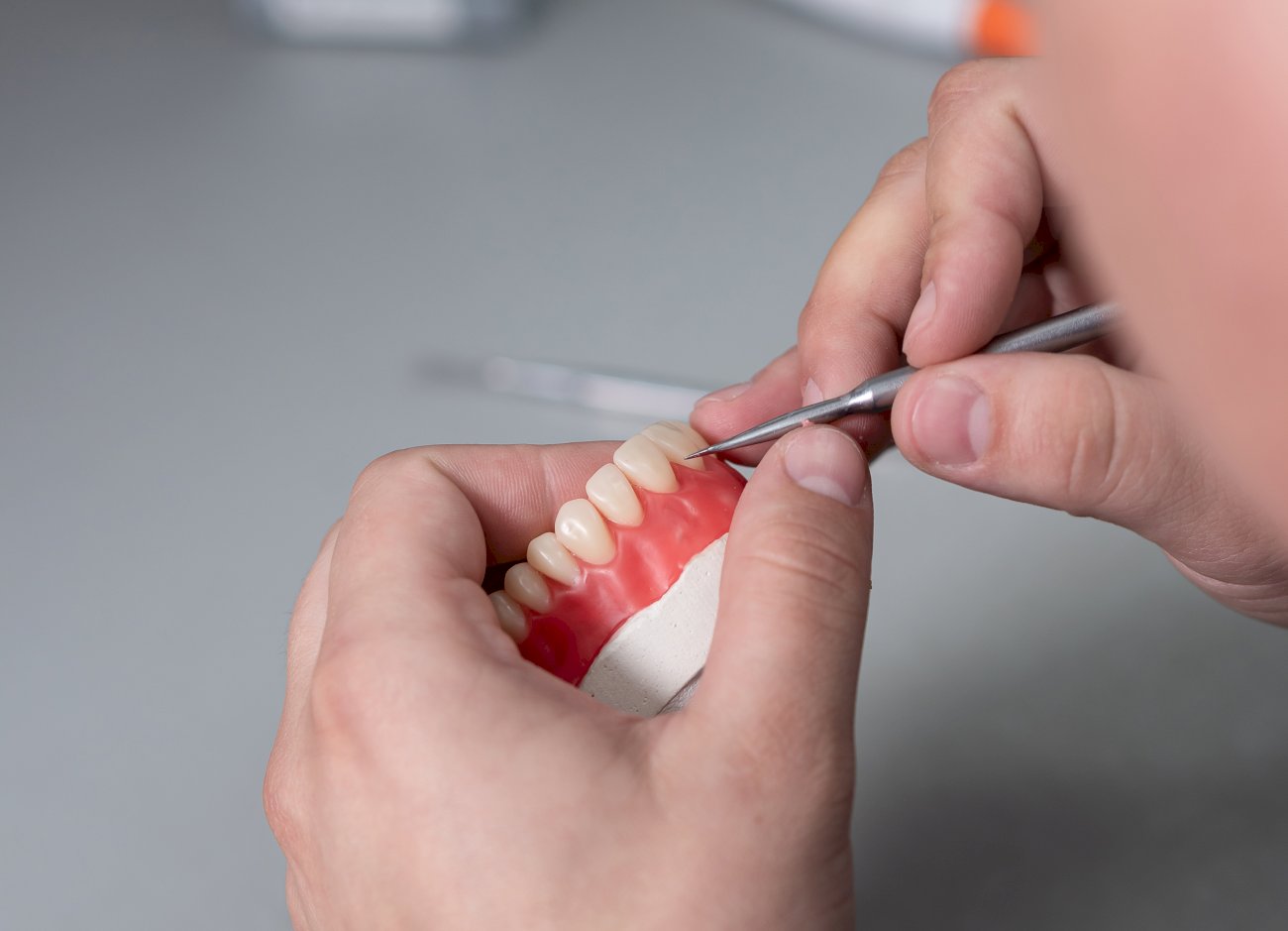 Во-первых, зубной техник может познакомиться с пациентом — главным заказчиком его работы, — присутствовать на примерке протеза. Специалисты клиники при работе с пациентами осуществляют постоянный визуальный контроль, учитывая все индивидуальные особенности: цвет зубной эмали, форму челюсти, состояние дёсен и т.д. Лечащий врач и техник постоянно контактируют в процессе изготовления протеза, что позволяет делать их действительно удобными. Клиника без лаборатории не может позволить себе такого.
