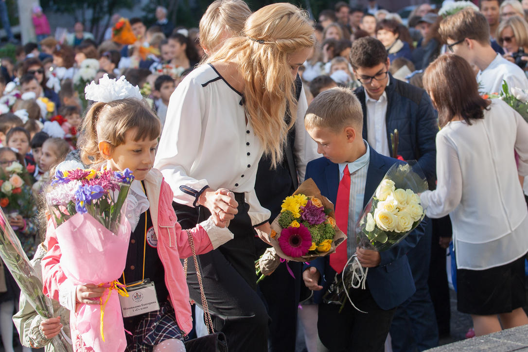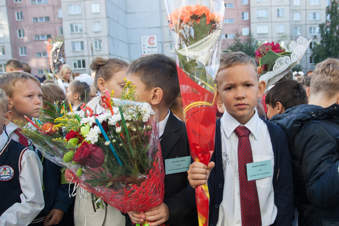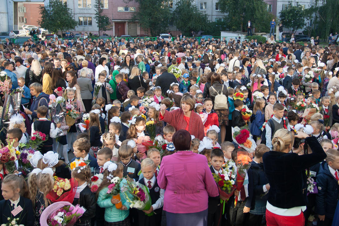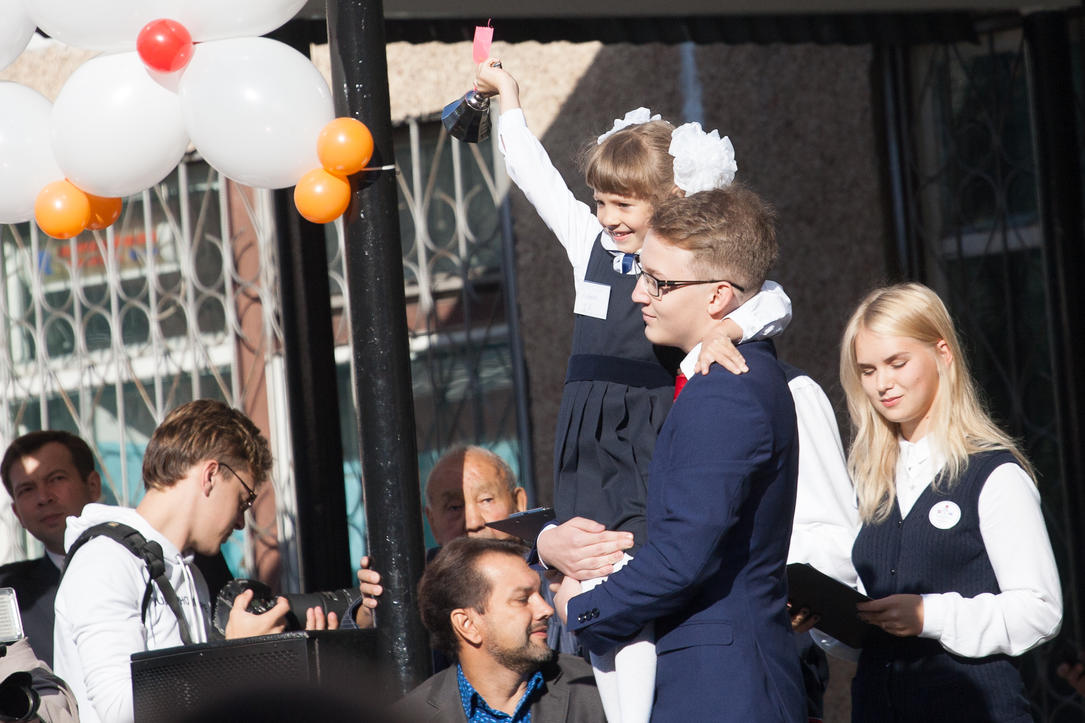 1 сентябрь 2016 г., Барнаул © Амител Вячеслав Мельников Цветы, банты, улыбки: как проходит День знаний в Барнауле