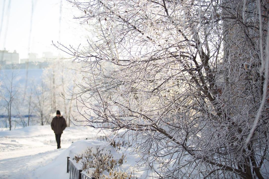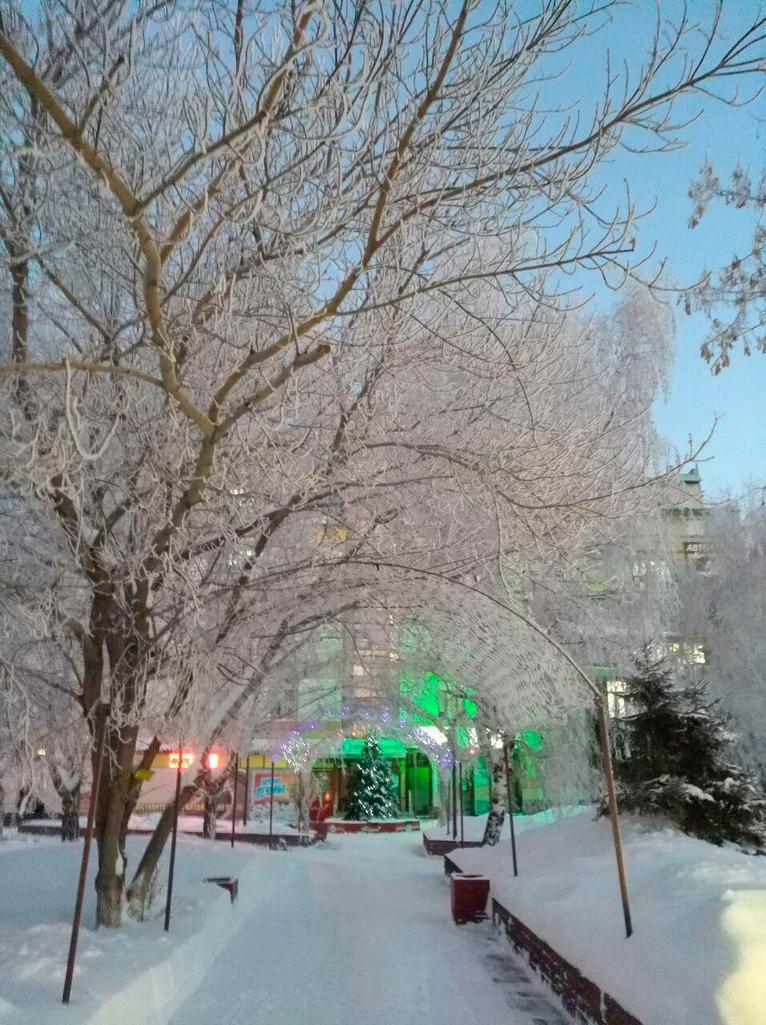 Кажется, сама природа стремится создать новогоднее настроение у барнаульцев. В ночь на 27 декабря серебристый иней украсил деревья и здания города, опушил ветки и крыши домов. Дополняют картину голубое небо и яркое солнце, от которых в Барнауле, кажется, уже успели отвыкнуть из-за сменяющих друг друга штормовых предупреждений.