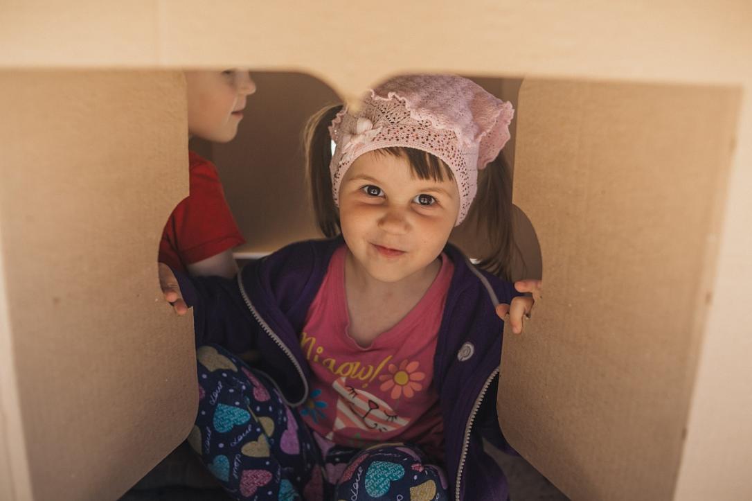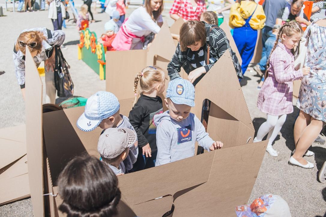 Еще одно развлечение, которое понравилось не только детям, но и взрослым — строительство домов из картона своими руками. Это занятие объединило целые семьи. и здесь тоже все было "по-серьезному": после того как дом был готов, начались отделочные работы и покраска стен. Так маленькие жители "Балтийской крепости" смогли построить целый микрорайон.