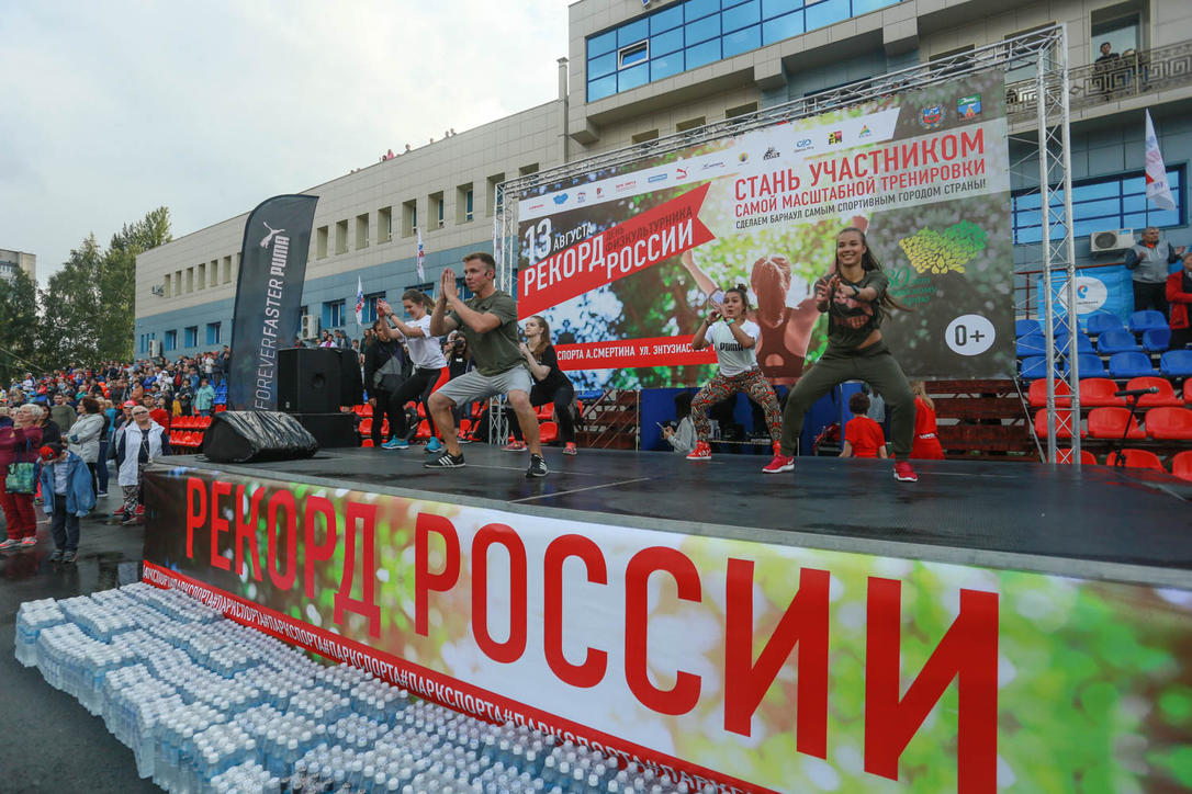 Более трех тысяч человек приняли участие в массовой тренировке, которая прошла 13 августа в Парке спорта Алексея Смертина в Барнауле. Представитель Книги рекордов России зафиксировал рекорд и вручил представителям парка соответствующий сертификат.