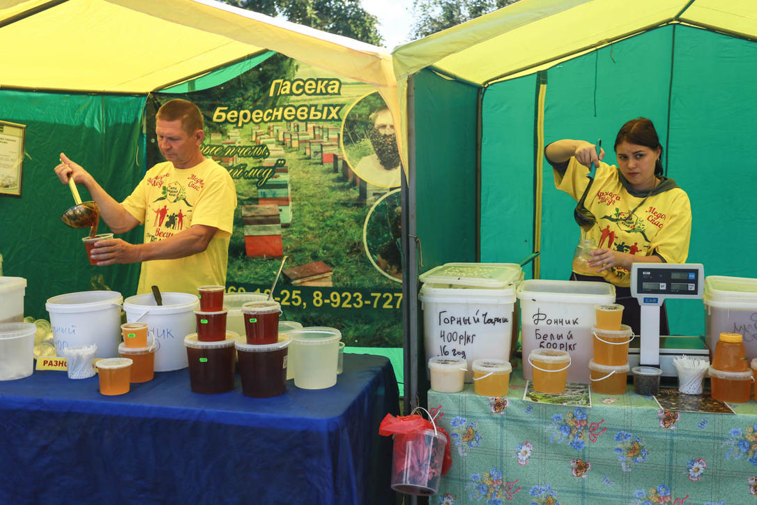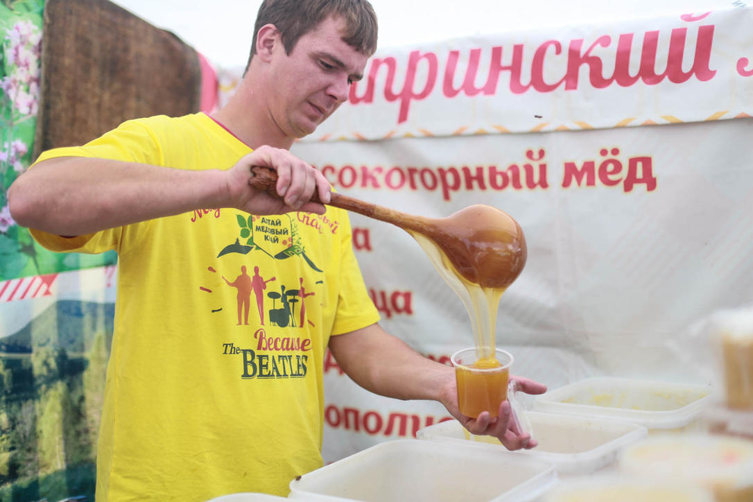 Ежегодный фестиваль "Медовый Спас на Алтае" открылся в Барнауле. 110 пчеловодов из 45 районов Алтайского края представляют свою продукцию на двух площадках Барнаула: площадь Сахарова и перед ТЦ "Сити-центр".