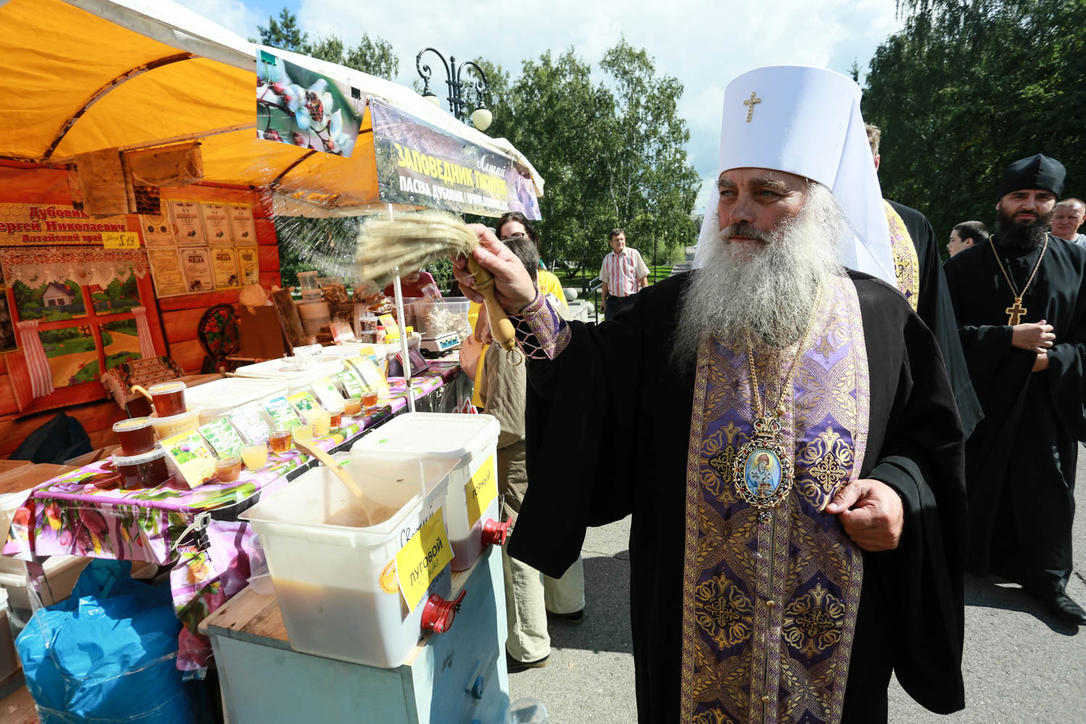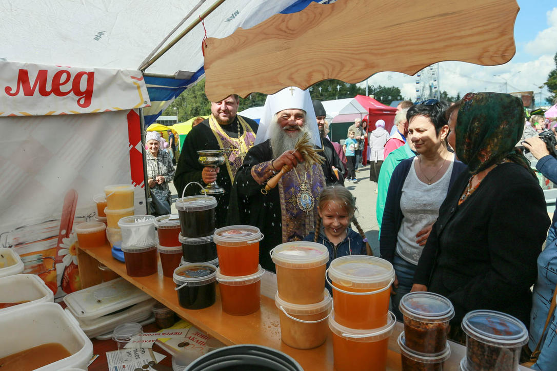 На площадь Сахарова на праздник пришли сотни барнаульцев. Их ждали танцы, дегустация мёда, конкурсы, а также лотерея "Медовый запас". Митрополит Барнаульский и Алтайский Сергий провел здесь чин освящения мёда. Напомним, "Медовый Спас на Алтае" вошел в топ-10 лучших гастрономических фестивалей России.