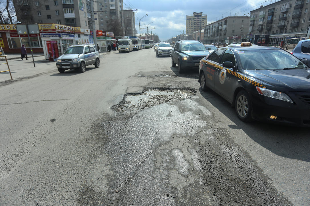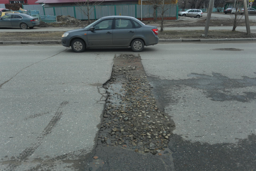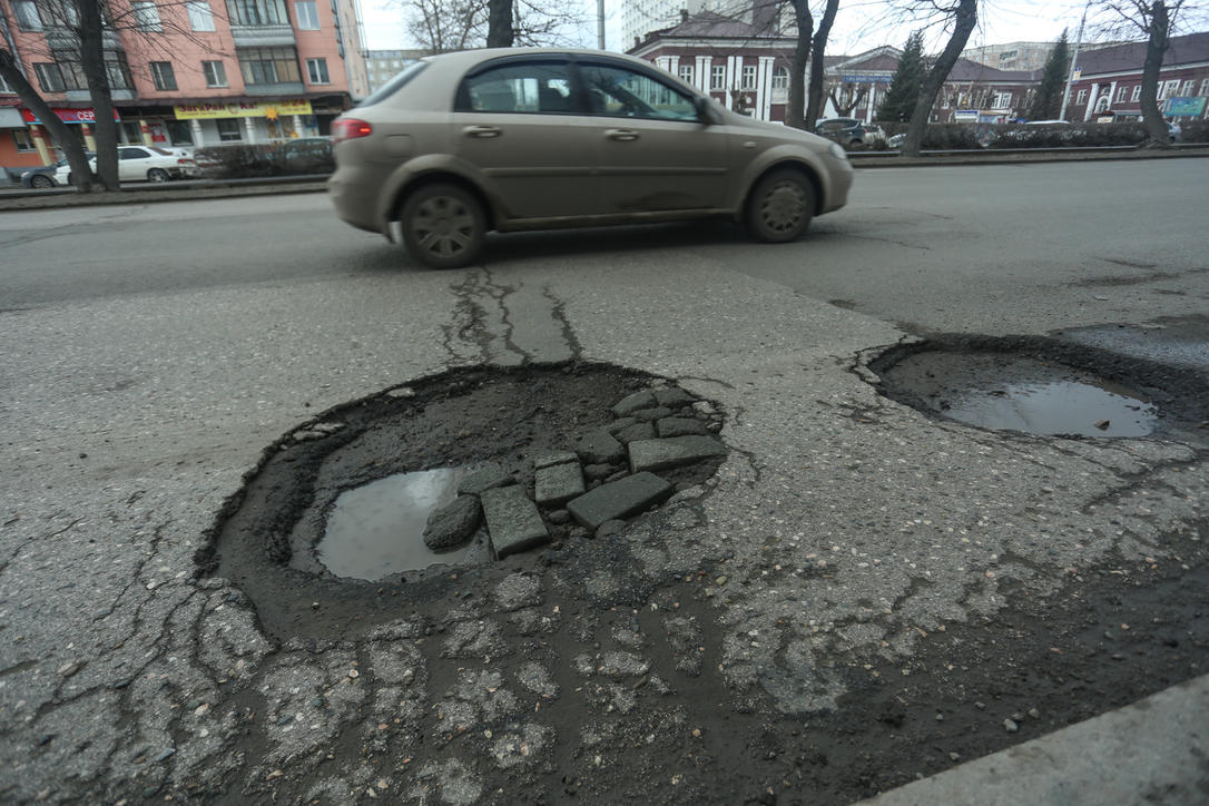 После зимнего периода на дорогах в Барнауле образовались множественные ямы. Погодные условия пока не позволяют дорожным службам в полной мере приступить к ремонтным работам, поэтому сейчас на многих улицах краевой столицы можно заметить огромные выбоины и ямы.
