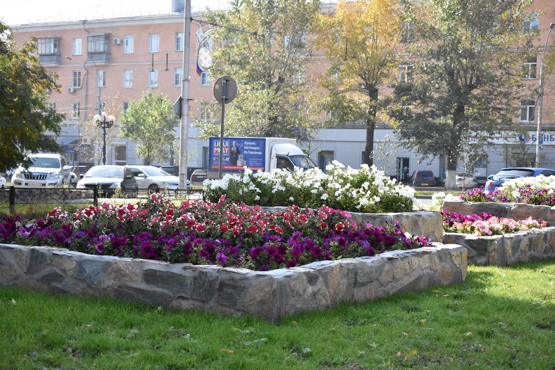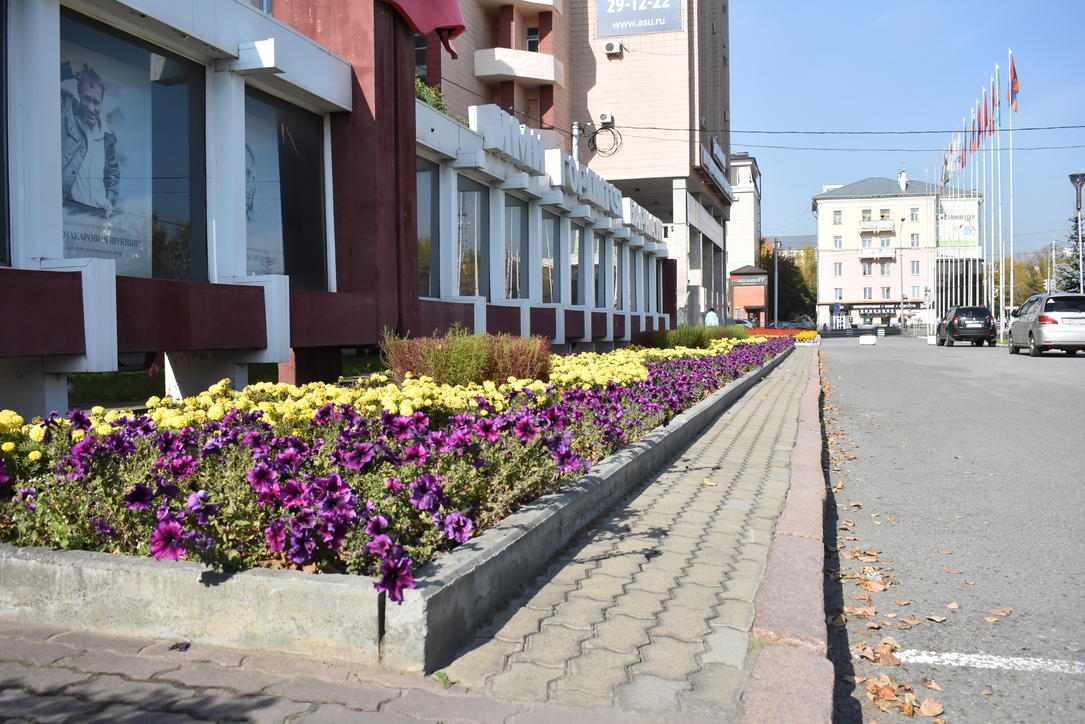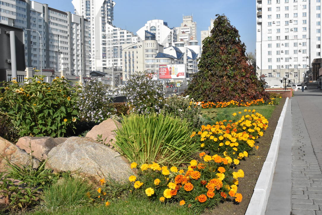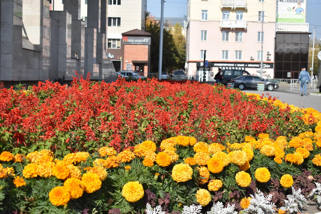 Не смотря на осенние краски, греет солнце и цветут цветы - можно погулять по городу и насладится уходящей красотой.