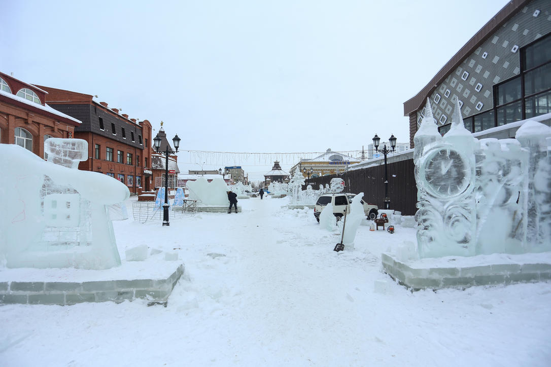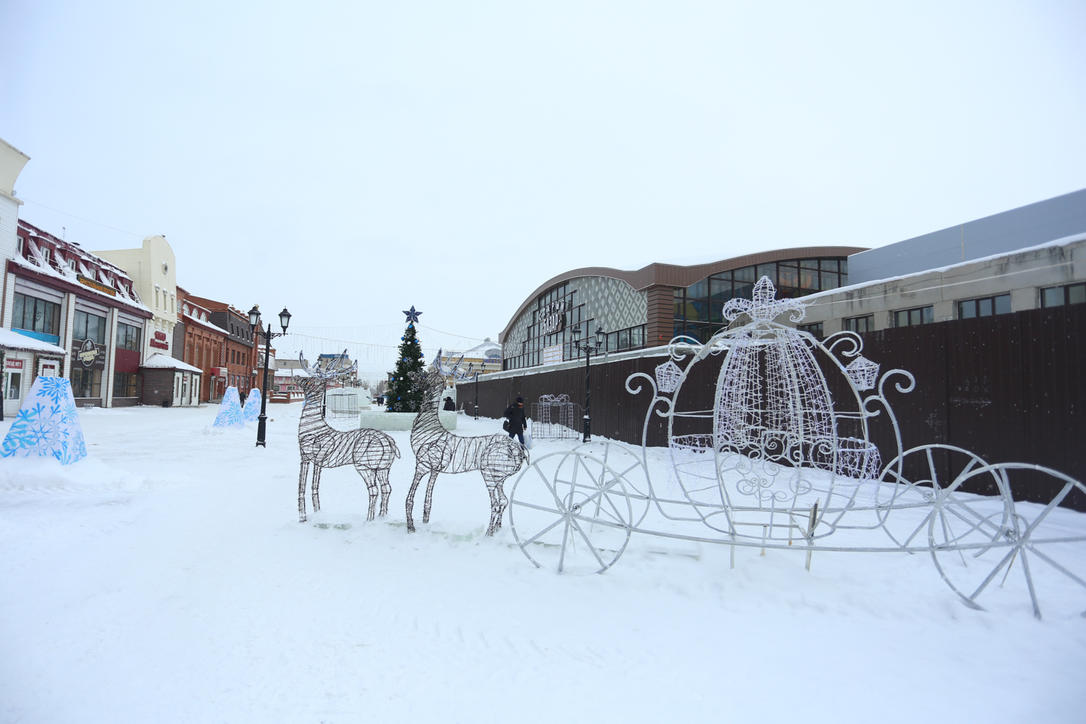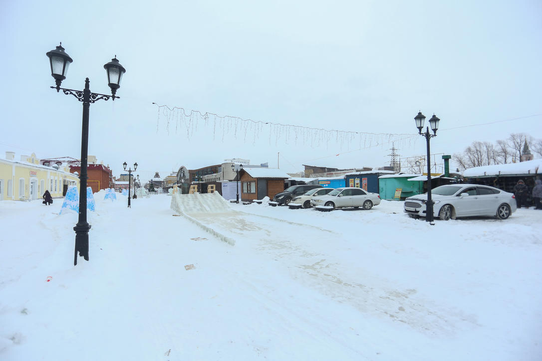 Строительство снежного городка продолжается не только на площади Сахарова, но и на улице Мало-Тобольской. В туркластере установили ёлку, горки, световые архитектурные формы. Кроме этого, здесь пройдет, как и на Сахарова, конкурс ледовых скульптур.