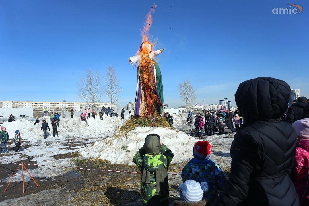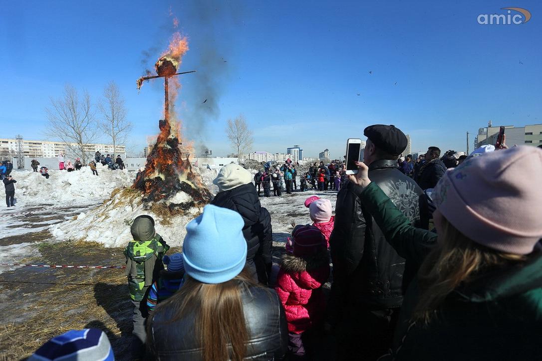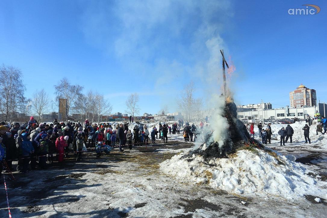 10 марта 2019 г., Барнаул. Екатерина Смолихина Забег петухов, метание блинов и сжигание чучела: масленичные гулянья в Барнауле
