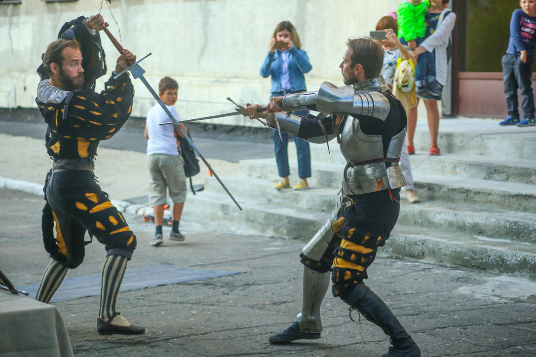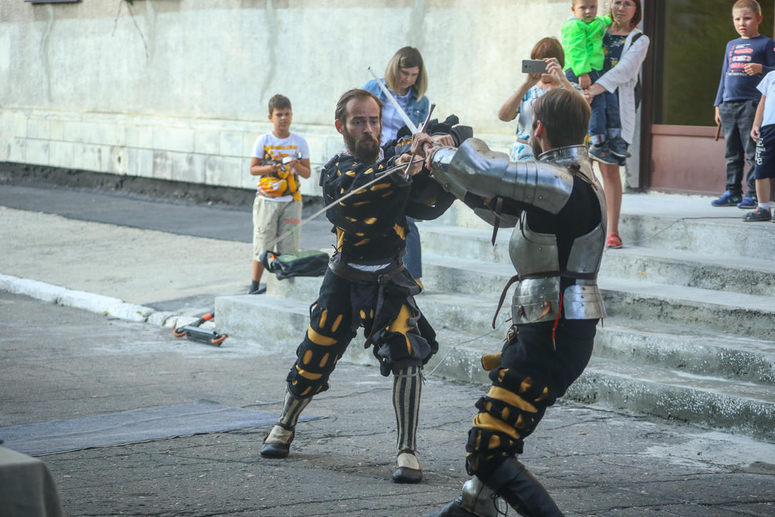 Участники клуба "Субхауфен" рассказали гостям мероприятия о немецких наемниках – ландскнехтах: их быте, особенностях одежды и тактике ведения боя. Все это сопровождалось показом исторических костюмов и доспехов. В заключение реконструкторы показали настоящие рыцарские бои на двуручных мечах.