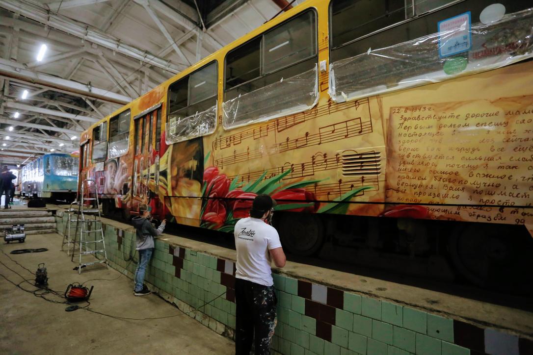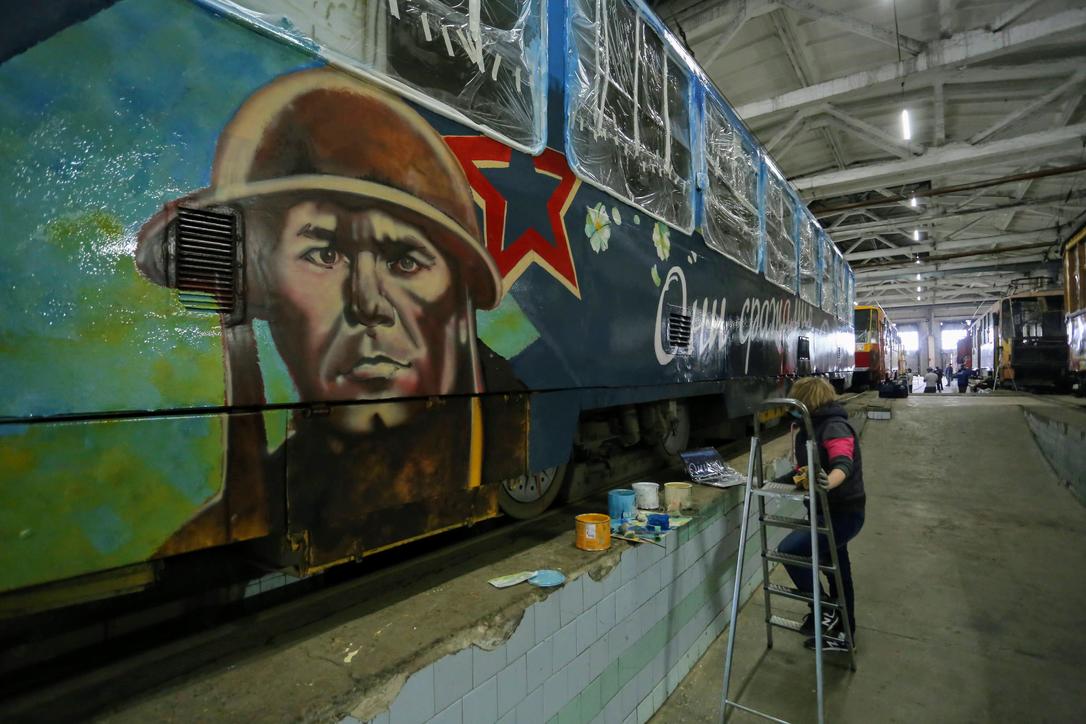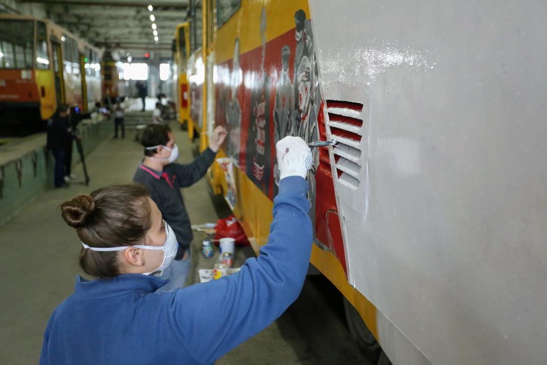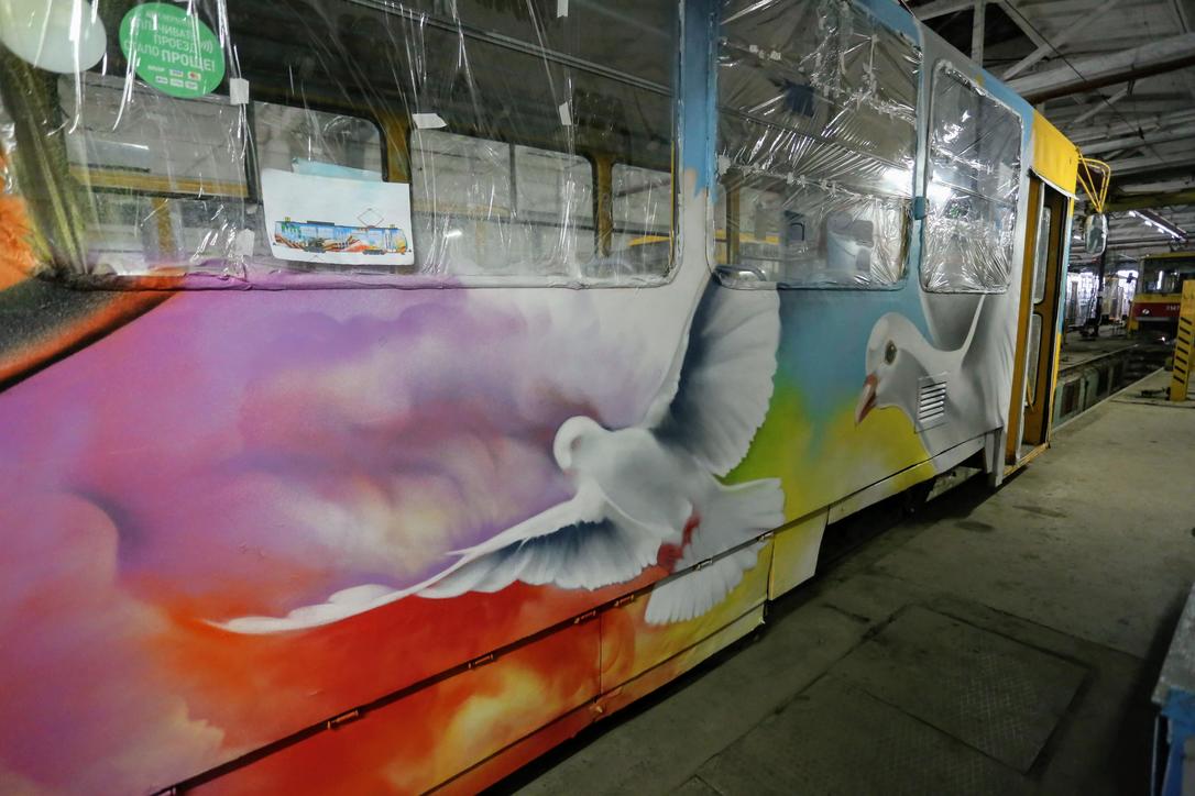 7 мая 2020 г., Барнаул. Екатерина Смолихина Искусство на рельсах. Как барнаульские художники украшают трамваи ко Дню Победы