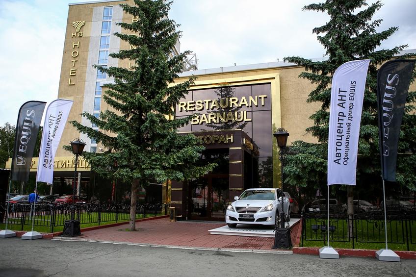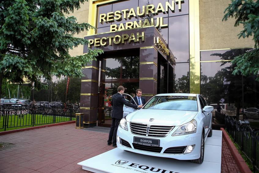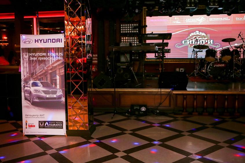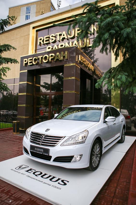 У входа ресторана гостей мероприятия ждала презентация автомобиля премиум-класса, флагмана модельного ряда - Hyundai EQUUS. За неделю до церемонии две красавицы-конкурсантки позировали фотохудожникам на новеньком HYUNDAI EQUUS, предоставленным Автоцентром АНТ в самых знаковых местах города – Дворце Бракосочетания Барнаула и у Театра Драмы им. Шукшина.