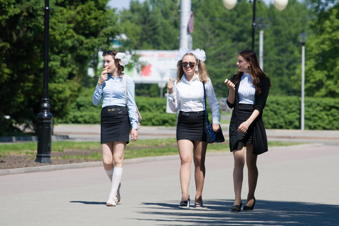 Последние звонки в социальных сетях многие сравнивают с Днем десантника. В интернете полно фотографий девочек в белых фартуках, купающихся в фонтанах и весьма разгульного поведения. Стоит отметить, что барнаульские выпускники отличаются куда более скромным поведением. Фотокорреспондент ИА "Амител" прогулялся по вечернему Барнаулу и запечатлел поведение "белых бантиков". Ничего аморального он не увидел.
