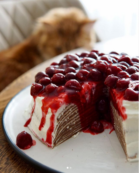 Шедевральный десерт к Масленице: шоколадный блинный торт с вишнёвым соусом от Sofi